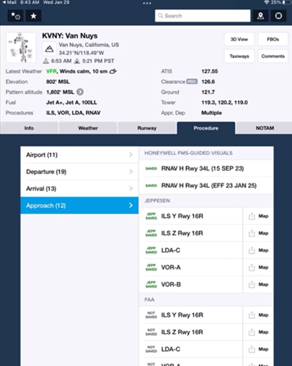 - FGV charts will be displayed within the Procedure tab for each airport with all other procedures. (See screenshot below for example.)