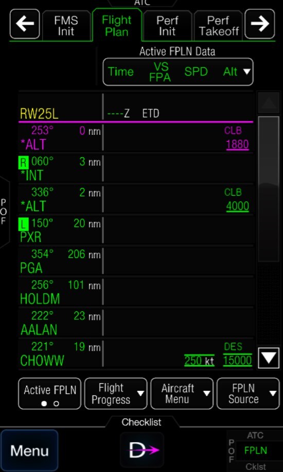 Figure 11. Departure Legs on FMS Flight Plan (Runway 25L)