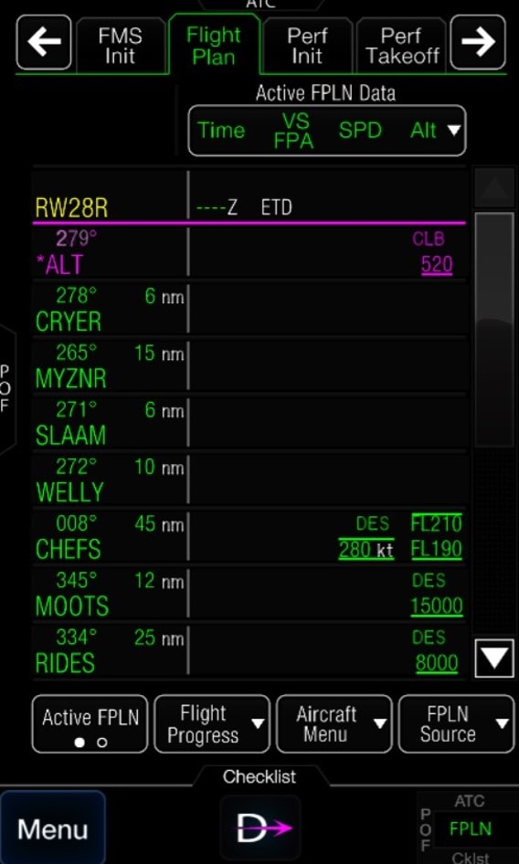 Figure 4. Departure Legs on FMS Flight Plan (Runway 28R)