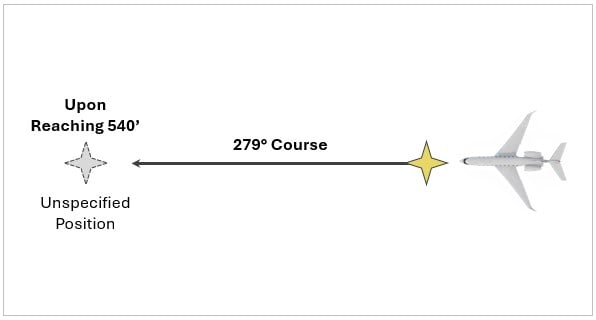 When the procedure is loaded into the FMS (Figure 4), it displays the waypoint *ALT with a course of 279 degrees and the vertical constraint of 520. The waypoint name, *ALT, informs the pilot that waypoint sequencing will occur once the altitude constraint has been met.