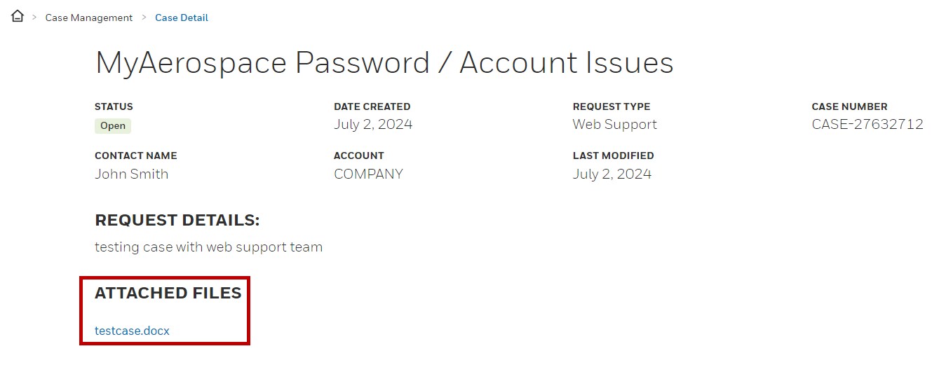 In the Case Detail page for the selected case, please refer to the Attached Files section to view a comprehensive list of attachments, which includes files shared by Honeywell as well as files you have uploaded.